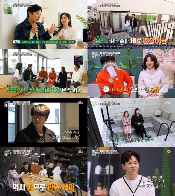 ‘서울엔 우리집이 없다’가 시청자를 듀플렉스 하우스의 매력에 빠뜨렸다.6일 방송된 JTBC ‘서울엔 우리집이 없다(연출 이창우, 김솔)’(이하 서울집)에서는 이수근, 이혜성과 성시경, 박하선이 1필지 2세대의 주택 형식인 듀플렉스 하우스를 만나러 용인으로 떠났다. 수근 팀은 ‘따로 또 같이 사는 집’, 시경 팀은 ‘따로 또 따로 사는 집’으로 각자 다녀온 집을 소개해 호기심을 유발했다.