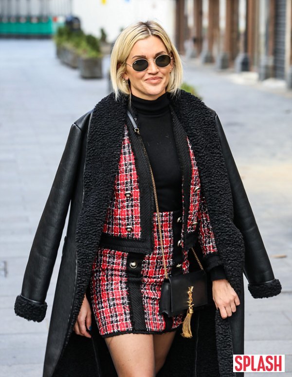 7일(현지시간) 영국 런던에 글로벌 라디오 스튜디오에서 포착된 애슐리 로버츠는 블랙 니트와 레드 톤의 체크무늬 재킷, 미니스커트를 입고 한겨울임에도 시원하게 각선미를 드러냈다.