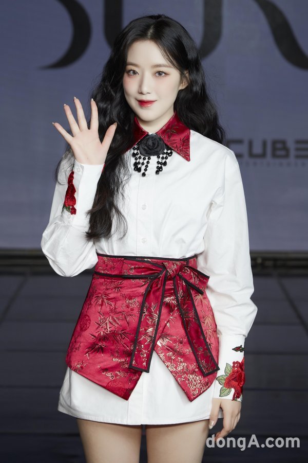 그룹 (여자)아이들의 슈화가 11일 오후 디지털 싱글 앨범 \'아이 번(I burn)\' 발매 온라인 쇼케이스에 참석해 포즈를 취하고 있다. <사진 제공 = 큐브엔터테인먼트>동아닷컴 국경원 기자 onecut@donga.com
