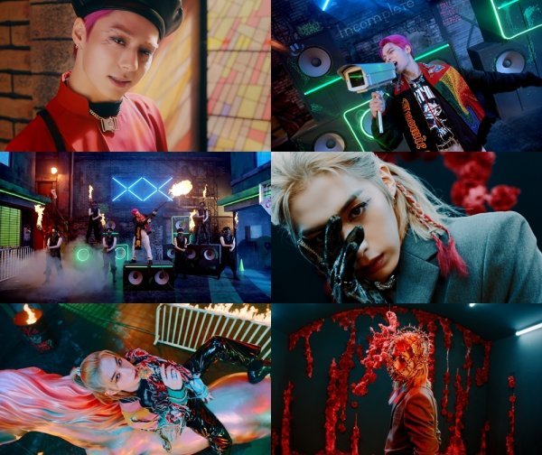 영상 속 환웅은 TV로 가득한 공간, 자신을 감시하는 여러 개의 눈동자에 둘러싸여있다. 이내 환웅은 CCTV를 확성기처럼 들고 소리를 외치고, 화염방사기를 발사하며 가감 없는 자유분방한 매력을 드러냈다. 반면 시온은 화려한 컬러의 말 동상에 앉아 여유롭게 사탕을 먹고 있는 모습이다. 이후 시온은 새빨간 꽃이 장식된 벽을 배경으로 이질적인 가면을 쓴 채 거칠고 매혹적인 분위기를 자아내 눈길을 끈다.