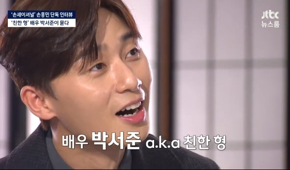 박서준은 12일 방송된 JTBC ‘뉴스룸’에 출연해 손흥민의 토트넘 100호골을 기념한 화상 인터뷰를 진행했다. 박서준은 절친 손흥민의 요청으로 인터뷰에 참여했으며 팬들이 보내준 질문을 토대로 이야기를 나눴다. 이날 박서준의 소개 자막에는 ‘친한 형’이라는 문구가 눈길을 끌었다.