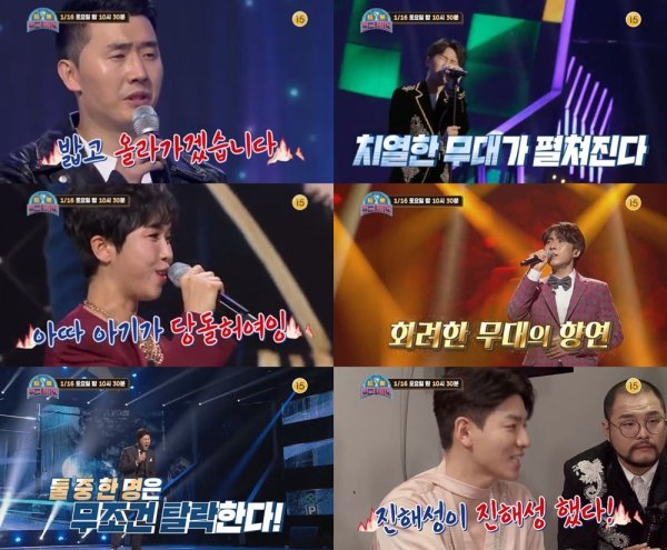 특히 강력한 우승후보로 꼽히는 진해성과 진해의 별을 잡고 새로운 별이 되겠다고 선포한 김산하의 미리 보는 결승전을 비롯해 한 치의 양보와 자비 없는 무대들이 웃음과 감동, 재미를 모두 선사할 예정이다.
