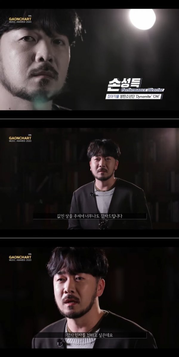 퍼포먼스 디렉터 손성득은 방탄소년단의 ‘다이너마이트(Dynamite)’와 ‘온(ON)’ 등에 참여했다. 그는 “값진 상을 주셔서 감사하다. 오늘은 특별히 방탄소년단 멤버들에게 감사 인사를 전하고 싶다”며 “처음 시작부터 지금까지 여러분의 여정을 함께할 수 있었고 한 부분이 될 수 있어서 행복하고 감사하다고 전하고 싶다”고 소감을 밝혔다.