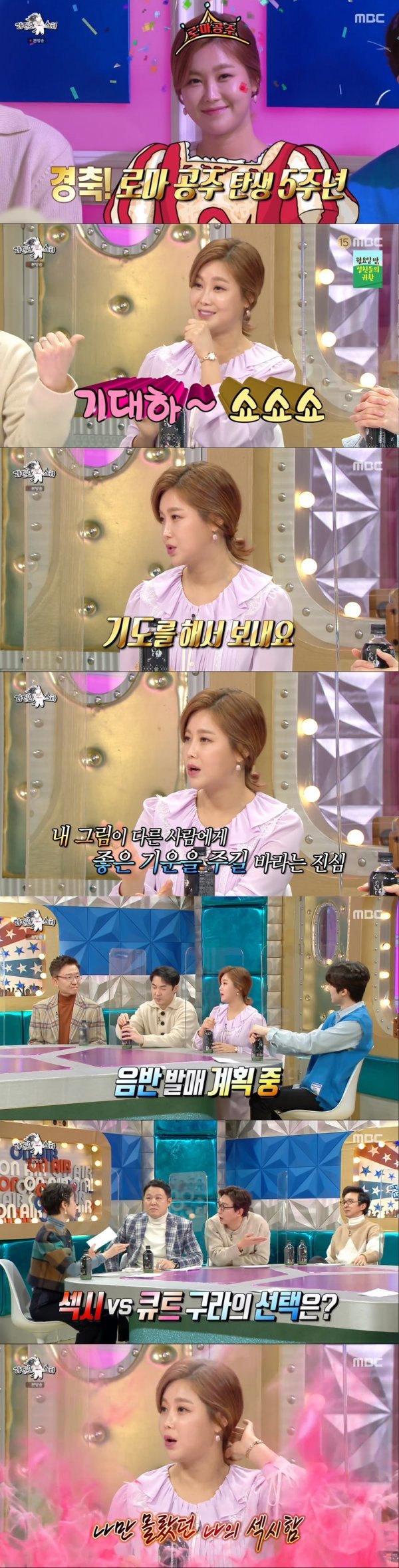솔비는 지난 13일 MBC \'라디오스타\'에 손범수·전진·SF9 찬희와 함께 \'가요 MC 톱텐\' 특집에 출연해 입담과 소신 발언까지 뽐내며 맹활약했다.