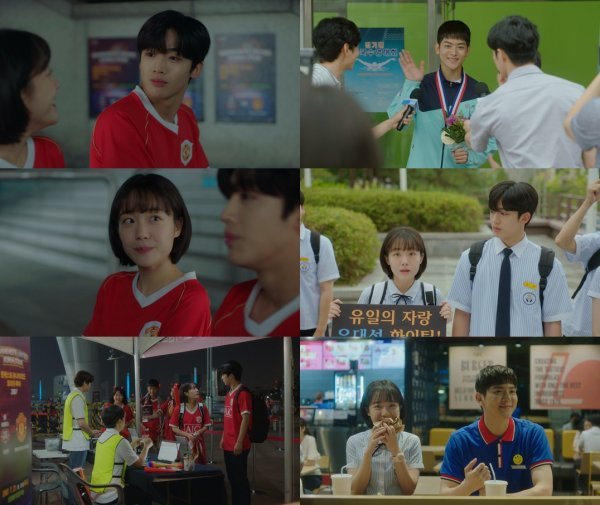 한편 우대성은 차헌과는 또다른 따스하면서도 박력 있는 모습으로 보는 이들의 심장을 저격한다. 수영 경기를 마친 듯, 운동복 위에 메달을 걸고 인터뷰를 하던 우대성이 신솔이를 향해 밝게 웃으며 손을 흔들고 있는 것.