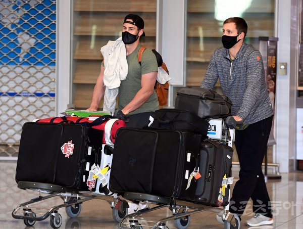 프로야구 KIA 외국인 선수 프레스턴 터커와 대니얼 멩덴이 18일 인천국제공항을 통해 입국하고 있다.