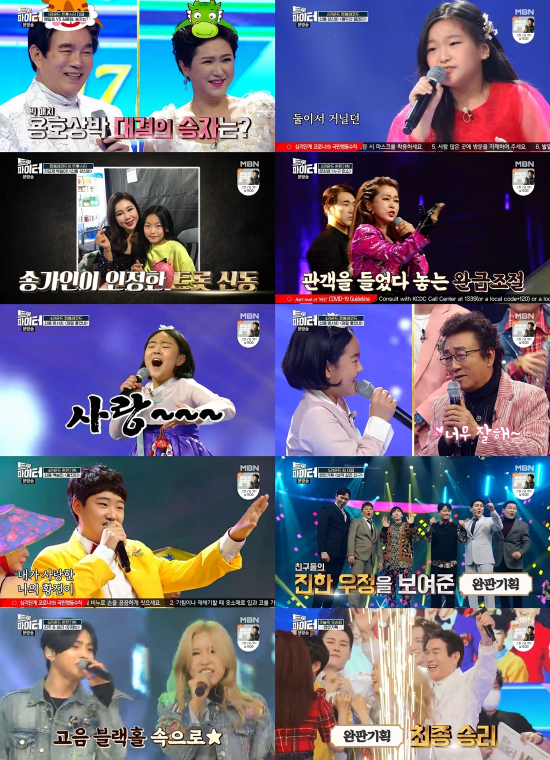 2라운드에는 ‘리틀 송가인’ 12살 강신비가 등장해 관심을 모았다. 가요제 싹쓸이만 50회 이상인 트로트 신동 강신비는 송가인과 콘서트에서 듀엣을 함께 부른 인연을 밝히기도. ‘용두산 엘레지’를 애절하게 부르는 강신비의 감성과 목소리에 모두가 감탄을 쏟아냈다. 이에 맞서 문희경은 배우 본업을 잊게 만든 열정 무대를 꾸몄고, ‘누구없소’를 노련하고 능숙하게 부르며 원숙미를 발산했다. 나이를 초월한 대결의 승자는 문희경이었다.