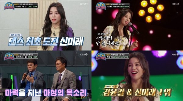 유니크한 음색과 수준급 안무 실력으로 모두를 사로잡은 신미래는 경상 감독 설운도에게 “심수봉 씨 목소리와 주현미 씨 목소리가 나는 것 같다. 사람을 끌어들이는 마력을 지닌 가수이자 가요계에 필요한 인재”라는 칭찬을 받았다.