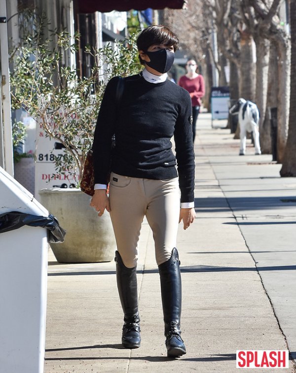 21일(현지시간) 미국 로스앤젤레스(LA)에 한 거리에서 포착된 셀마 블레어는 숏컷 헤어스타일에 블랙 스웨터와 베이지 팬츠를 입고 블랙 라이딩 부츠를 매치하여 보이시한 미모를 자랑했다.