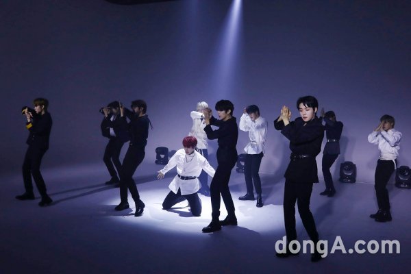 그룹 골든차일드가 25일 오후 다섯 번째 미니앨범 \'YES\' 발매 기념 온라인 미디어 쇼케이스에서 화려한 무대를 선보이고 있다.
