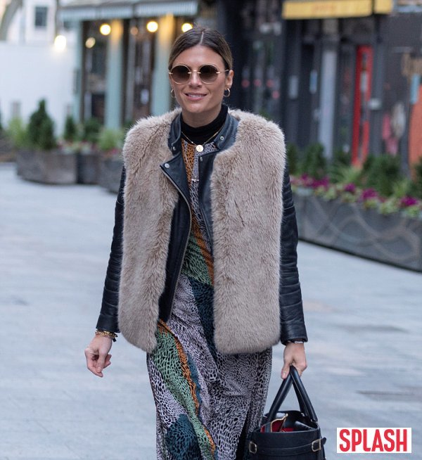 24일(현지시간) 영국 런던에 글로벌 라디오 스튜디오에서 포착된 조 하드 먼은 화려한 패턴의 롱 원피스와 블랙 가죽 재킷을 입고 그 위에 퍼 베스트를 매치하여 독특한 패션 스타일링을 선보였다.