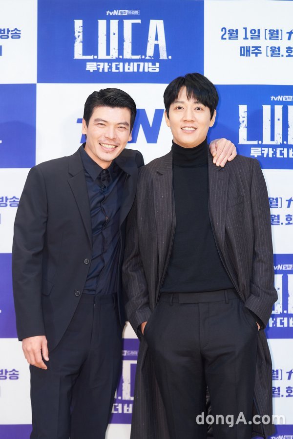 배우 김성오(왼쪽)와 김래원이 27일 오후 tvN \'루카: 더 비기닝\' 온라인 제작발표회에 참석해 포즈를 취하고 있다.