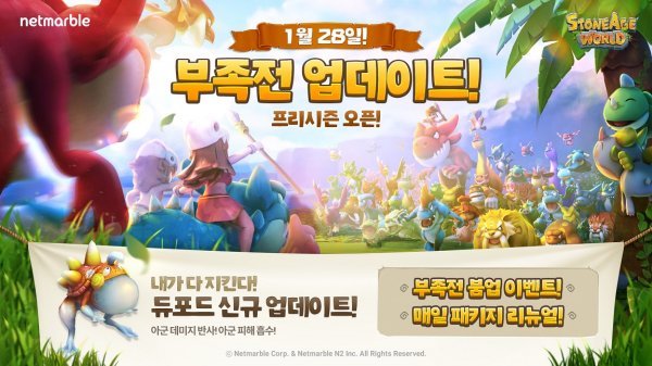 넷마블(대표 권영식, 이승원)은 모바일 턴제 MMORPG(다중접속역할수행게임) ‘스톤에이지 월드’(개발사 넷마블엔투)에 신규 펫 ‘듀포드 계열’을 추가하는 등 업데이트를 실시했다고 29일 밝혔다.