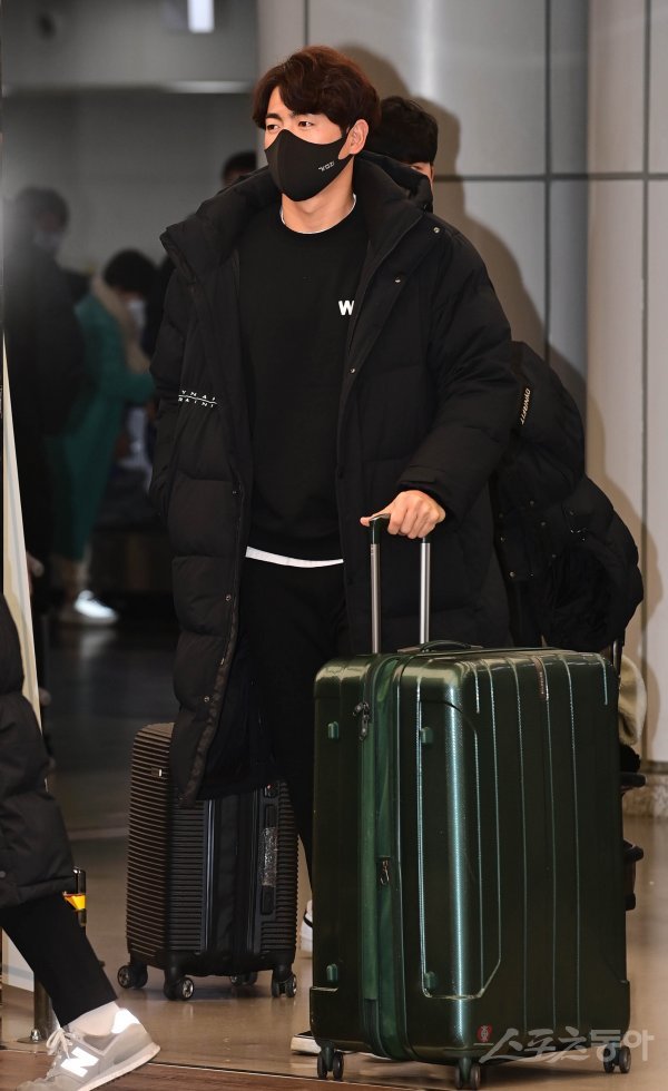 1일 SK 와이번스 선수단이 강창학야구장에서 전지훈련을 앞두고 제주국제공항을 빠져나오고 있다. SK 이태양이 입국장을 나오고 있다.