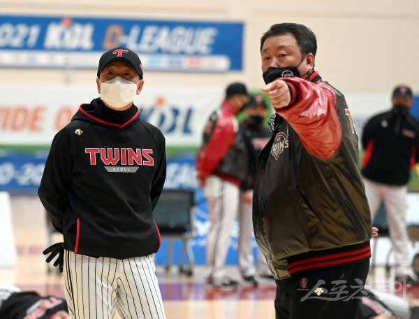 LG 트윈스는 2월 1일부터 이천 LG챔피언스파크에서 2021 국내 스프링캠프를 시작했다. 류지현 감독과 차명석 단장이 이야기를 나누고 있다.