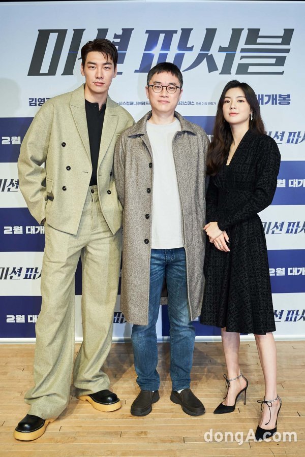 배우 김영광, 감독 김형주, 이선빈(왼쪽부터)이 1일 오전 온라인으로 진행된 영화 ‘미션 파서블’ 제작발표회에 참석해 포즈를 취하고 있다.