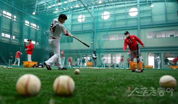 1일 제주 강창학야구장에서 SK 와이번스의 전지훈련이 열렸다. SK 선수들이 배팅 훈련을 하고 있다.