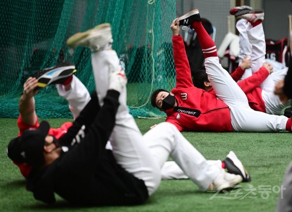 1일 제주 강창학야구장에서 SK 와이번스의 전지훈련이 열렸다. SK 선수들이 몸을 풀고 있다.