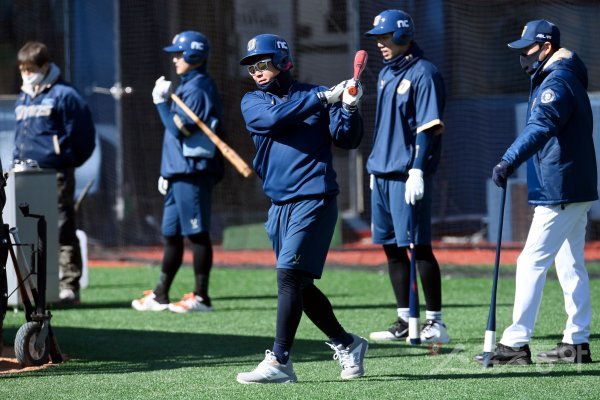 2일 창원 마산야구장에서 프로야구 NC 다이노스의 2021 스프링캠프가 열렸다. 쌀쌀한 날씨속에 NC 양의지가 배팅훈련을 펼치고 있다.