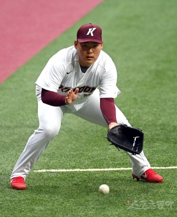 2일 서울 고척스카이돔에서 진행된 키움 히어로즈의 2021 국내 스프링캠프에서 이명기가 수비 훈련을 하고 있다.