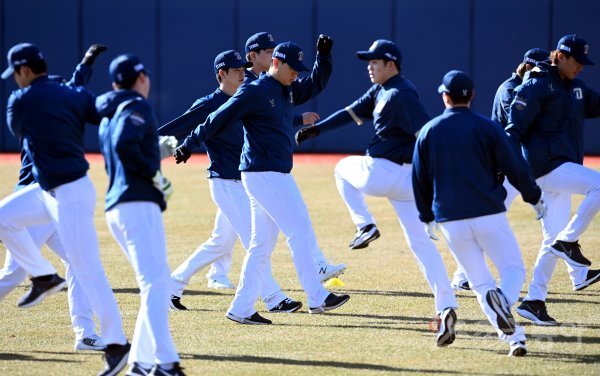 2일 창원 마산야구장에서 프로야구 NC 다이노스의 2021 스프링캠프가 열렸다. 쌀쌀한 날씨속에 NC 투수들이 훈련을 펼치고 있다.