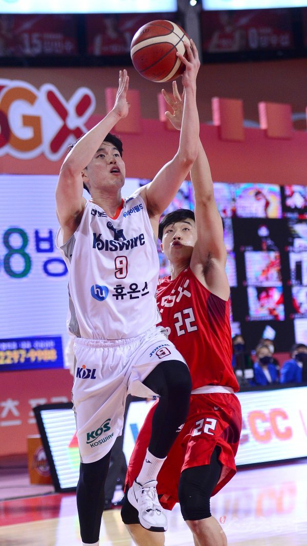 2일 잠실학생체육관에서 열린 ‘2020-2021 현대모비스 프로농구’ 서울 SK와 인천 전자랜드 경기에서 전자랜드 전현우가 SK의 수비를 뚫고 골밑을 공격하고 있다.