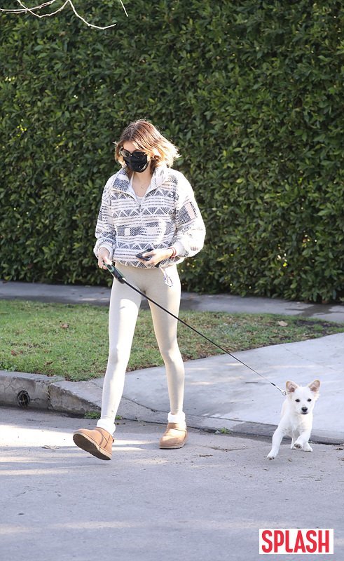 2일(현지시간) 미국 로스앤젤레스(LA)에 한 거리에서 사랑스러운 반려견과 함께 산책을 즐기는 카이아 거버의 모습이 카메라에 담겼다. 카이아 거버는 패턴이 인상적인 집업 티셔츠와 레깅스를 매치하여 늘씬한 각선미를 자랑했다.