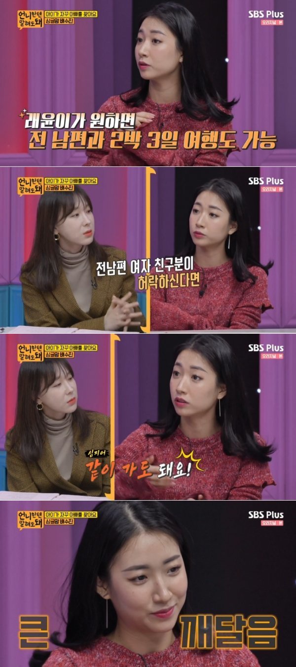 이지혜가 “전 남편에게 여자친구가 생기면 여행을 가기 힘들지 않겠나”라고 묻자 배수진은 “전 남편의 여자친구가 허락하신다면 같이 가도 된다”고 생각을 밝혔다.