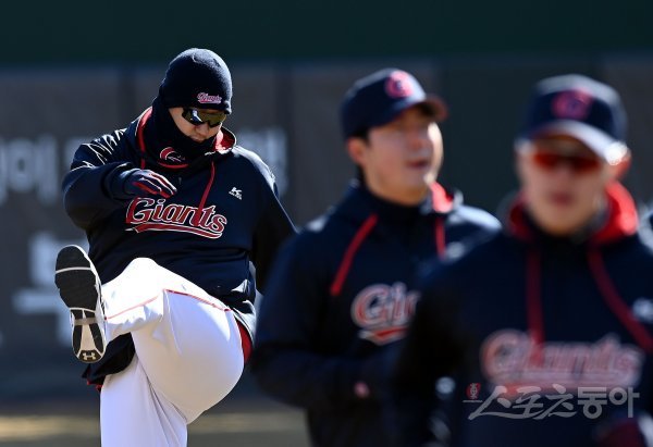 3일 부산 사직야구장에서 프로야구 롯데 자이언츠의 2021 스프링캠프가 열렸다. 쌀쌀한 날씨속에 롯데 이대호가 훈련을 펼치고 있다.