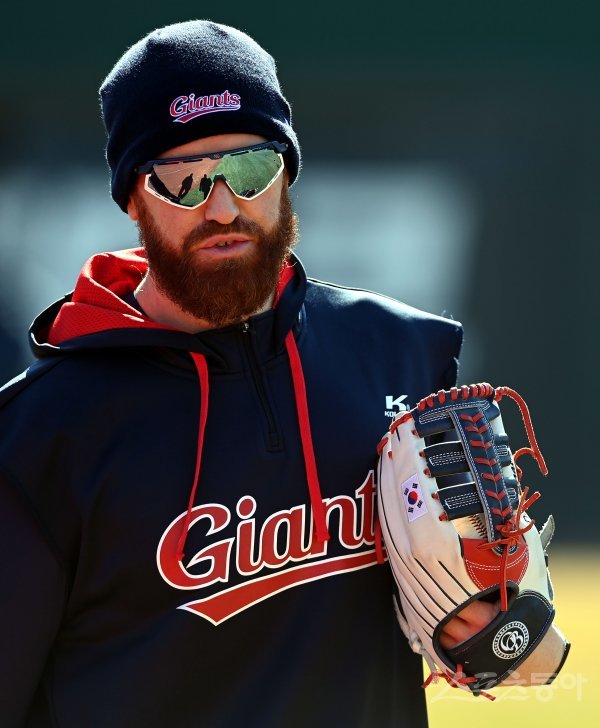 3일 부산 사직야구장에서 프로야구 롯데 자이언츠의 2021 스프링캠프가 열렸다. 쌀쌀한 날씨속에 롯데 스트레일리가 훈련을 준비하고 있다.