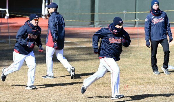 3일 부산 사직야구장에서 프로야구 롯데 자이언츠의 2021 스프링캠프가 열렸다. 쌀쌀한 날씨속에 롯데 이대호가 훈련을 펼치고 있다.