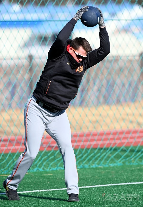 4일 경남 거제 하청스포츠타운에서 프로야구 한화 이글스의 2021 스프링캠프가 열렸다. 한화 힐리가 훈련을 펼치고 있다.