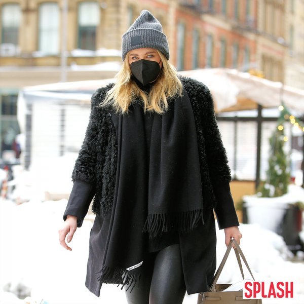 3일(현지시간) 미국 뉴욕에 한 거리에서 포착된 조지나 버크는 블랙 퍼 코트와 같은 색의 가죽 팬츠를 입고 머플러와 니트 비니 등을 매치하여 시크한 윈터룩을 선보였다.