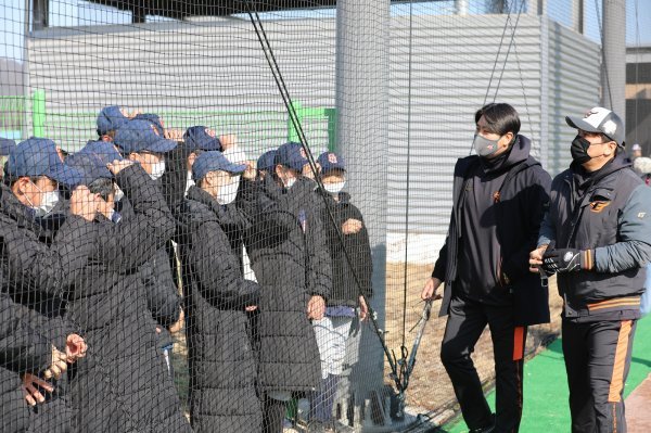 정민철 단장과 김태균 스페셜 어시스턴트 역시 이날 견학을 온 학생 선수들에게 인사를 건네며 야구선수가 갖춰야 할 자세 등에 대한 조언을 건넸다.