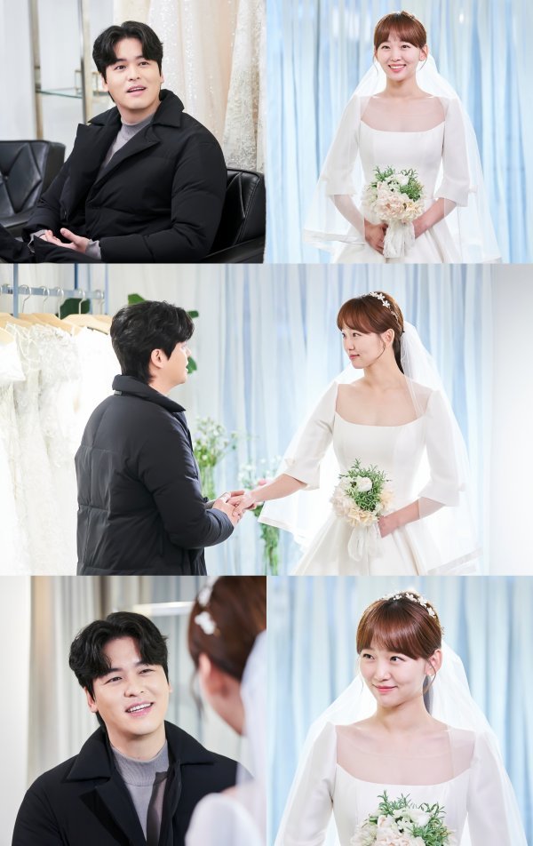 이제 두 사람에게 남은 과제는 행복한 앞날을 잘 설계하는 것뿐이다. 그런 가운데, 오늘(7일) 공개된 사진에는 본격적인 결혼준비에 나선 ‘코알라-뭉이’ 커플의 달콤한 한때가 담겼다. 순백의 웨딩드레스를 입은 빛채운의 아름다운 자태에 빠져 말을 잇지 못하는 재희의 진실된 표정이 ‘새신랑 리액션’의 정석을 보여준다.