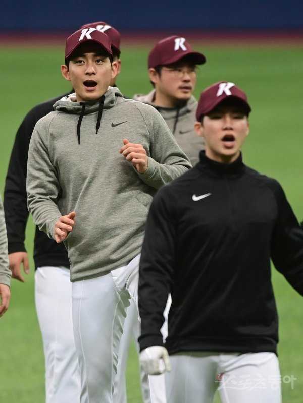 8일 서울 고척스카이돔에서 열린 키움 히어로즈의 2021 스프링캠프에서 이정후가 스트레칭으로 몸을 풀고 있다.