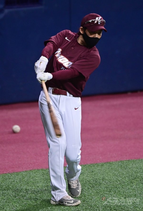 8일 서울 고척스카이돔에서 열린 키움 히어로즈의 2021 스프링캠프에서 이용규가 타격 훈련을 하고 있다.