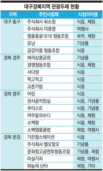 이광수 한국관광공사 대구경북 지사장은 “올해 영천, 고령, 영덕, 포항, 대구 북구 등 5곳이 신규로 관광두레에 선정되었는데, 이들 지역을 대상으로 사업진단부터 주민사업체 신규 모집까지 지원할 예정”이라며 “기존 관광두레들의 사례를 공유해 향후 사업에 반영할 수 있도록 할 계획”이라고 밝혔다.