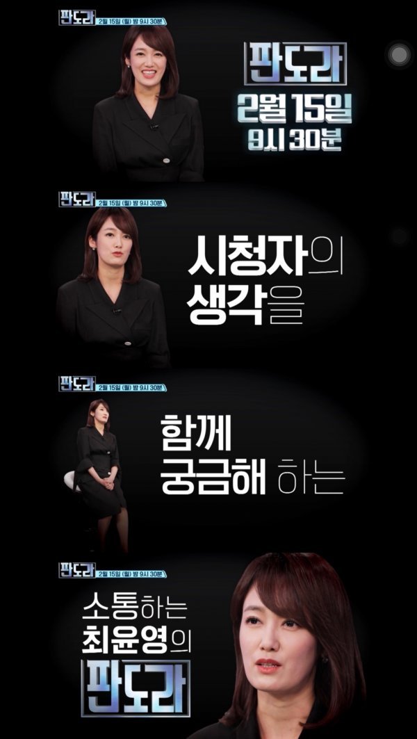 한편, 최윤영이 진행하는 MBN ‘판도라’는 정계 원로와 각 분야의 정치 고수들이 한 데 모여 한국 정치의 민낯을 해부하고 다양한 정치⦁사회 이슈를 시청자가 알기 쉽게 풀어주는 정치토크쇼이다. 오는 15일 첫 방송되며, 매주 월요일 밤 9시 30분에 방송된다.