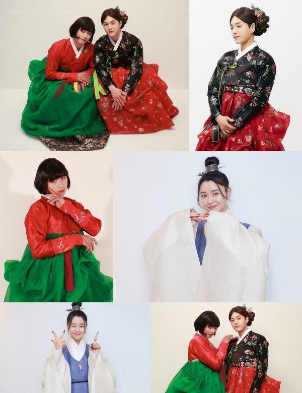 공개된 사진 속에는 한복을 풀 장착한 채 여장과 남장으로 파격 변신한 김명수, 권나라, 이이경의 모습이 담겼다. 먼저 김명수와 이이경이 다정한 투샷으로 브로맨스와 워맨스를 오가는 케미를 발산해 시선을 사로잡는다. 단아한 포즈를 취하고 있는 김명수는 화려한 꽃무늬 패턴의 의상과 올림머리까지 완벽하게 소화하는 꽃미모를 자랑하고 있다. 이이경은 요염한 포즈와 치명적인 눈빛으로 분장에 완전히 녹아들어 능청스러운 면모를 고스란히 드러내기도.