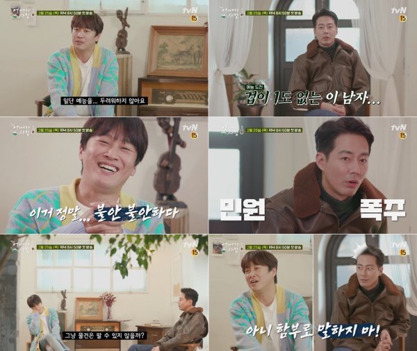 의지가 남다른 \'예능 새내기\' 조인성은 어촌으로 가야 하는 것 아니냐, 물건 파는 건 할 수 있지 않냐, 마트에서 일하는 건 어떠냐는 등 프로그램의 방향성에 다채로운 제안을 한다. 이에 차태현은 "아니야. 함부로 말 하지마. 예능은 말조심해야 해"라며 말 하는 대로 이루어질 수 있는 예능의 세계를 경고하는 \'예능 선배\'다운 모습으로 웃음을 선사한다.
