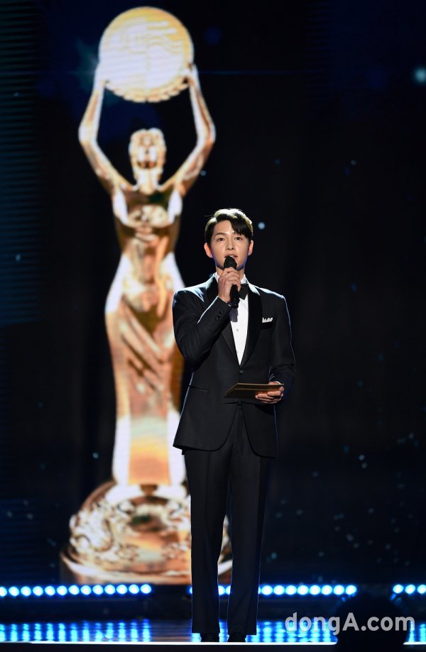 배우 송중기가 9일 오후 인천 영종도 파라다이스시티에서 열린 제41회 청룡영화상 시상식에 참석하고 있다.