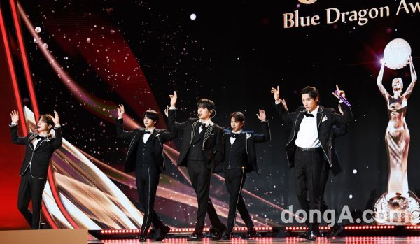 그룹 몬스타엑스가 9일 오후 인천 영종도 파라다이스시티에서 열린 제41회 청룡영화상 시상식에서 화려한 무대를 꾸미고 있다.