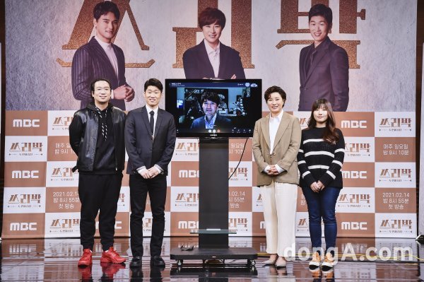 노승욱 PD, 박지성, 박찬호, 박세리, 이민지 PD(왼쪽부터)가 10일 오후 진행된 MBC 새 예능프로그램 ‘쓰리박: 두 번째 심장’ 제작발표회에 참석해 포즈를 취하고 있다. 이날 제작발표회는 온라인 공개됐다.