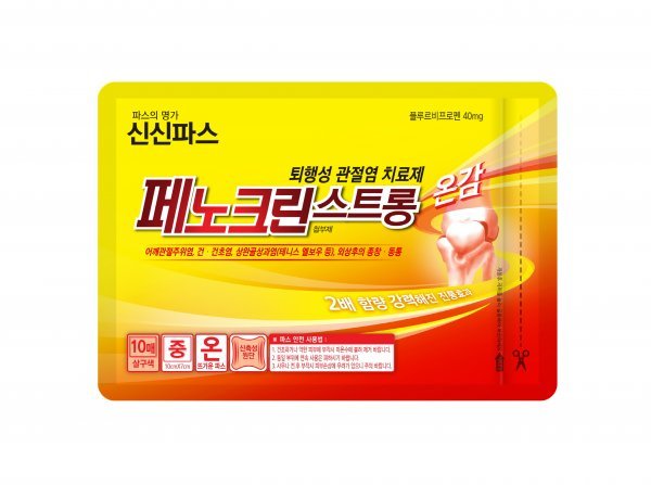 신신제약은 플루르비프로펜 성분의 퇴행성관절염 치료제 ‘페노크린 스트롱’을 출시한다. 동일 성분의 기존 제품인 페노크린에 비해 플루르비프로펜 함량을 20mg에서 40mg으로 2배 늘리면서 강력한 소염·진통 효과를 제공한다. 국내 플루르비프로펜 첩부제 중 유일하게 온감을 제공해 통증 관리에 효과적이다.