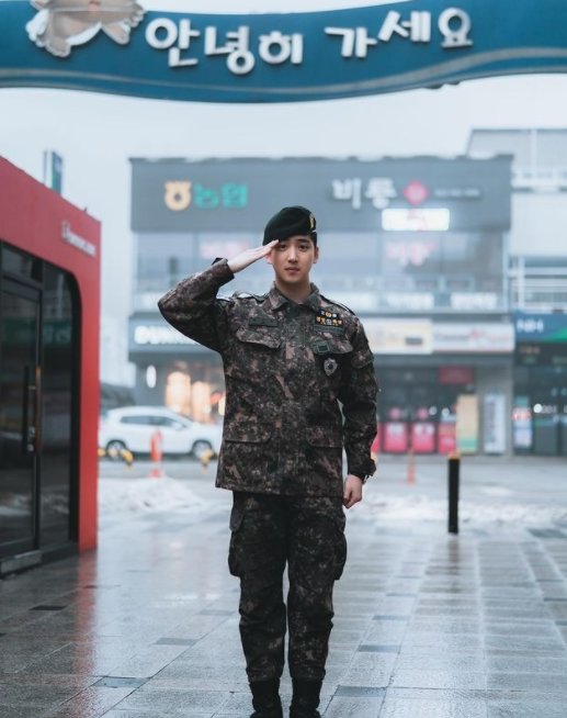 이와 함께 차선우는 군복을 입고 찍은 사진을 게재했다. 사진 속 차선우는 경례를 한 채 카메라를 응시하고 있다.