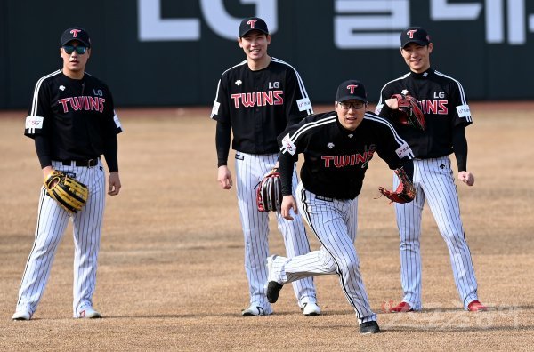 22일 경기도 이천 LG챔피언스파크에서 프로야구 LG 트윈스의 2021 스프링캠프가 열렸다. LG 김현수가 수비 훈련을 하고 있다.