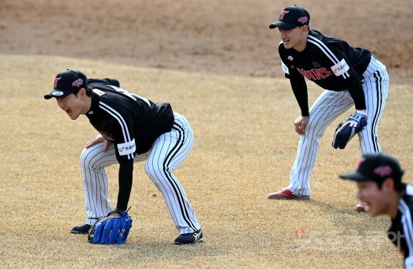 22일 경기도 이천 LG챔피언스파크에서 프로야구 LG 트윈스의 2021 스프링캠프가 열렸다. LG 이상호가 훈련도중 고함을 지르고 있다.
