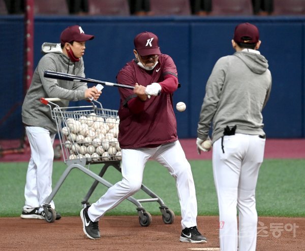 22일 서울 고척스카이돔에서 진행된 키움 히어로즈의 2021 국내 스프링캠프에서 에스피노자 수비 코치가 지도를 하고 있다.