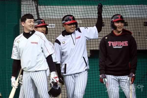 23일 경기도 이천 LG챔피언스파크에서 프로야구 LG 트윈스의 2021 스프링캠프가 열렸다. LG 이형종, 정주현 , 채은성, 오지환이 훈련을 지켜보고 있다.